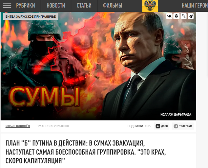 План "Б" Путина в действии: В Сумах эвакуация, наступает самая боеспособная группировка. "Это крах, скоро капитуляция" Фото: Царьград