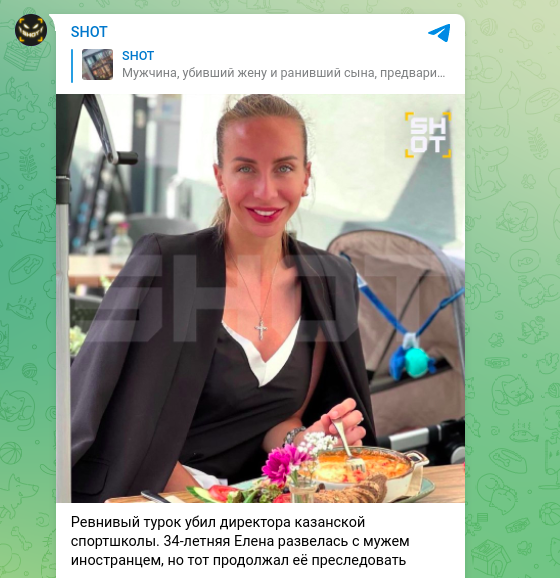 В Казани раскрываются страшные подробности жестокого убийства, жертвой которого стала гимнастка по имени Елена Р. Женщина погибла от рук мужа-турка в день рождения их общего сына.