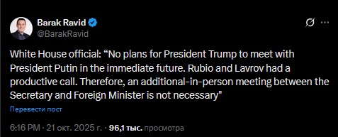 Фото: скриншот сообщения журналиста Axios в соцсети X/Twitter