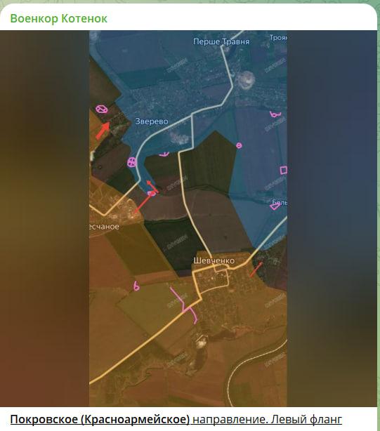 Также вражеские ресурсы сообщают, что на Покровском направлении идут бои в районе Котлино - русские войска продвигаются северо-западнее и в направлении ж/д линии северо-восточнее. В районе Удачного продолжаются встречные боестолкновения в северо-восточной части населённого пункта: