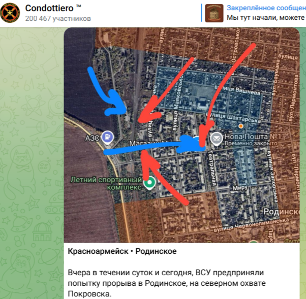 По его данным, русские военные не стали сопротивляться и позволили атакующим отрядам дойти до жилой застройки в центре Родинского. Украинские Telegram-ресурсы и представители вражеского командования тут же принялись рапортовать, что ВСУ прорвались на севере Покровска, что началась зачистка.
