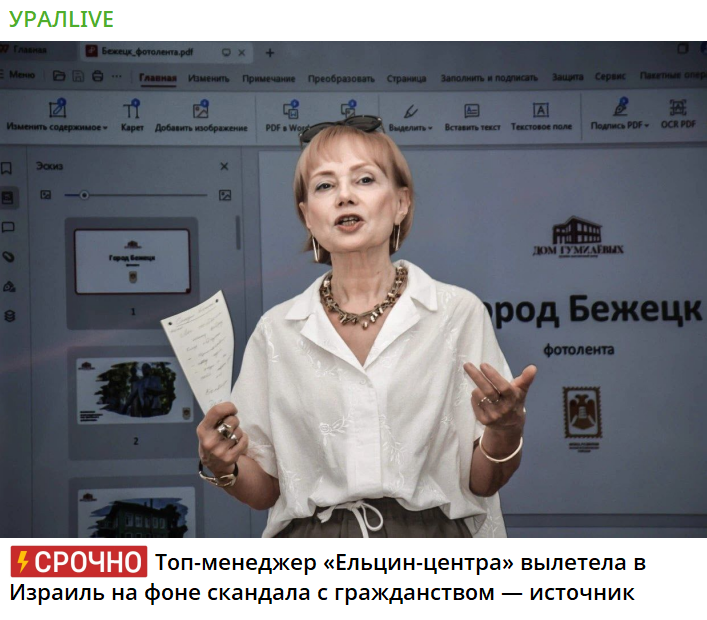 Всё началось с того, что Telegram-канал написал о телерепортаже, в котором говорилось об израильском гражданстве первого замдиректора "Ельцин Центра" Людмилы Телень.