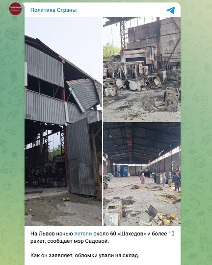Также удары наносились по объектам во Львове: сначала большая группа "Гераней" "свела с ума ПВО", после чего зашли ракеты и нанесли разрушительные удары.