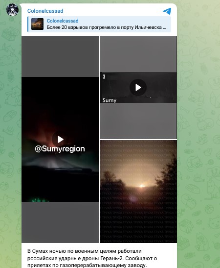 Минувшей ночью в Сумах был нанесён массированный удар русскими беспилотниками "Герань-2". Источники сообщали об ударе по крупнейшему местному заводу, и вот русская разведка подтвердила: