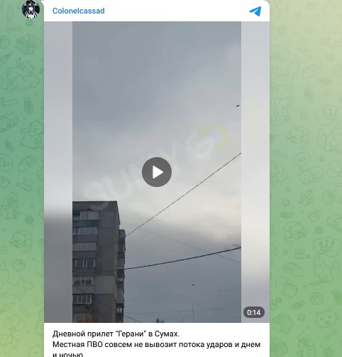 К слову, несколькими днями ранее эксперт Центра военно-политической журналистики Борис Рожин показал кадры из Сум во время атаки "Гераней", отметив, что "местная ПВО совсем не вывозит потока ударов и днём и ночью".