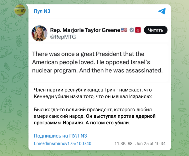 "Выступал против ядерной программы Израиля, его убили": Расправа над Кеннеди - американский политик дала намёк
