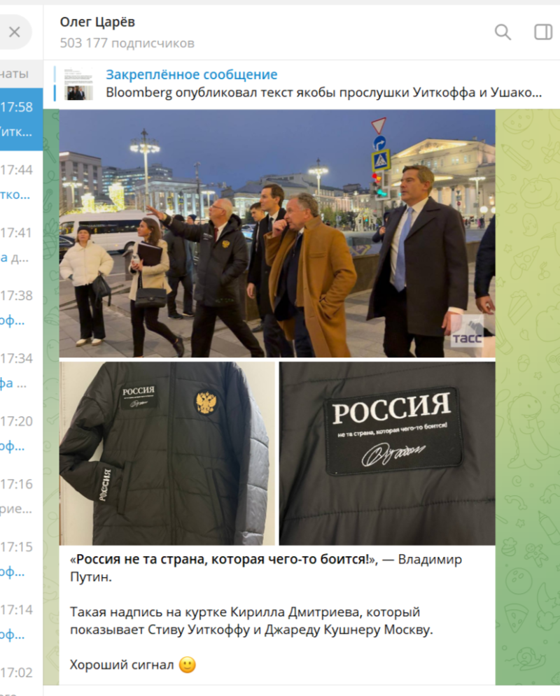 На встречу с Уиткоффом отведено неограниченное время, подчеркнули ранее в Кремле. А пока журналисты кремлёвского пула передают из уст в уста – "сейчас будут громкие новости". О чём они? Обязательно вернёмся в скором времени и расскажем.