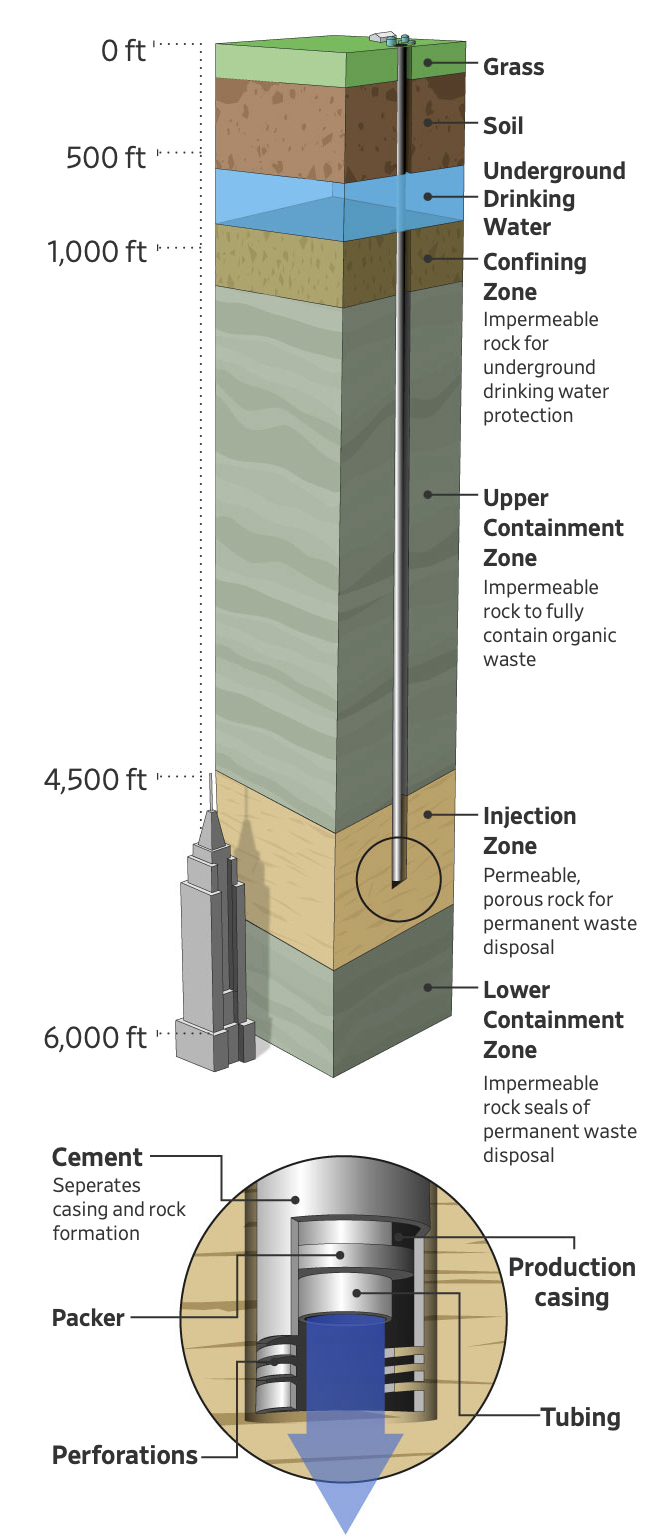 Схема, отображающая процесс и глубину, на которой остаются отходы. ФОТО: wsj.com