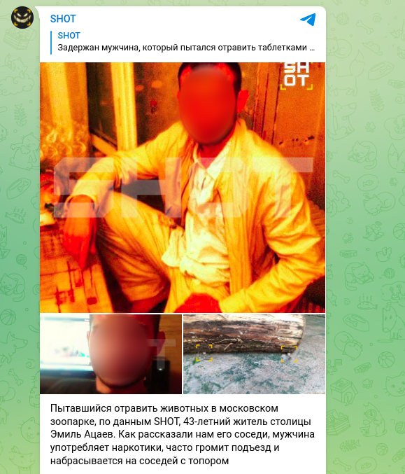 Соседи рассказали о личности мужчины, который пытался отравить рысей в московском зоопарке. Оказалось, он состоял на учёте в ПНД и неоднократно совершал опасные выходки. На данный момент преступник задержан.
