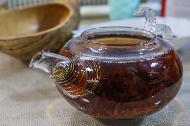 Итак, листья нужно правильно собрать, высушить, а ещё лучше - ферментировать. Так цвет у чая будет тёмным, красивым.