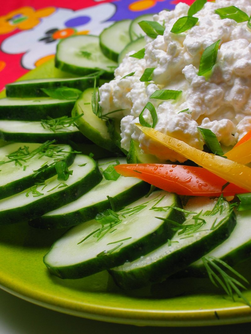Впрочем, в "завтрак долгожителя" доктор включает ещё и овощи. К гречке полагается салат из огурчиков, сладкого болгарского перца и зелени. Такой салатик благотворно влияет на пищеварительную систему.