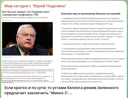 Если кратко и по сути, то устами Келлога режим Зеленского предлагает заключить "Минск-3"... Это по сути тот же "Минск-2", только без "политической части",