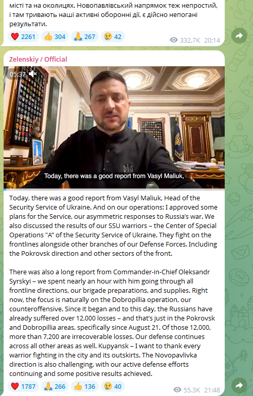 Скриншот: https://t.me/V_Zelenskiy_official