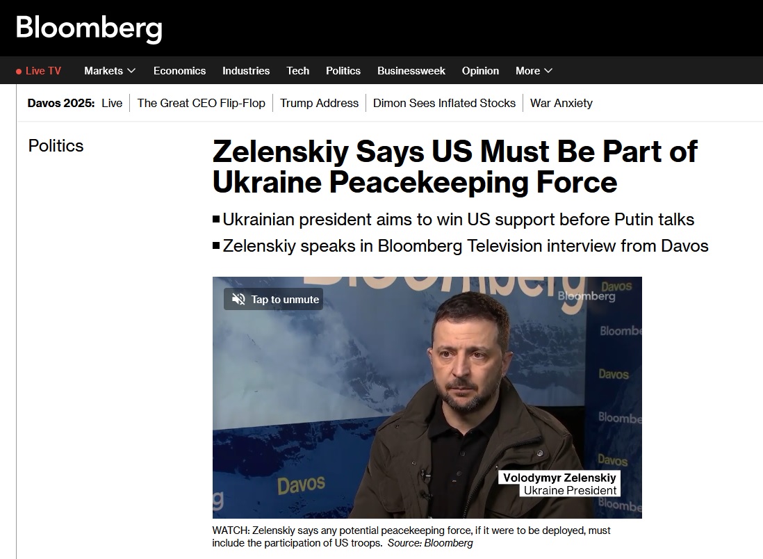 На кадрах видно, что украинский лидер заметно сдал и даже похудел. Однако это не помешало ему гнуть свою линию. Зеленский заявил, что у "европейских союзников" недостаточно сил, чтобы остановить Россию, поэтому миротворческий контингент, который может быть развёрнут на Украине в случае урегулирования, должен включать американские войска.