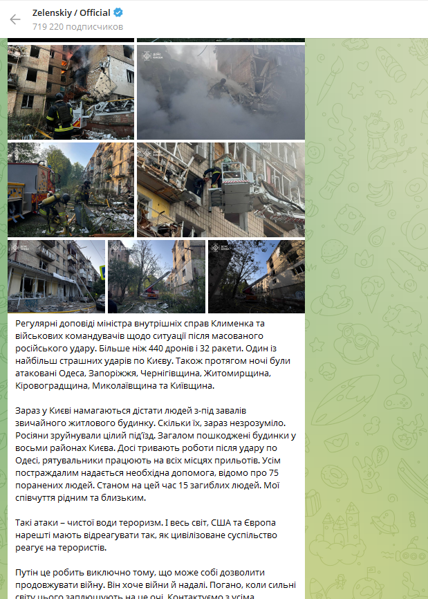 ФОТО: Скриншот https://t.me/V_Zelenskiy_official