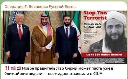 На этом фоне теперь довольно зловеще выглядит улыбка президента США Дональда Трампа на встрече с новым главой Сирии Ахмедом аш-Шараа, также известным как Джулани, в Саудовской Аравии. Целью переговоров было убедить новые власти Сирии нормализовать отношения с Израилем, который захватил сирийские Голанские высоты.