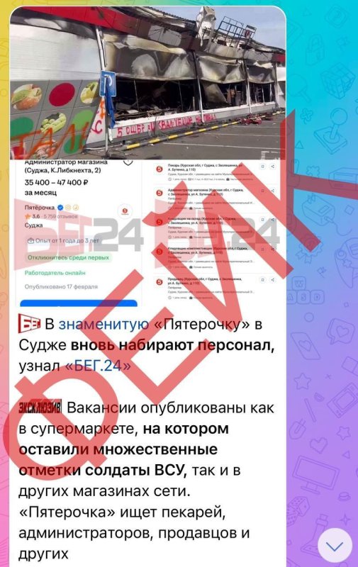 После того как армия России выбила украинских военных из Суджи, военкор Влад Андрица показал, что стало с магазином, захватом и разграблением которого хвастали боевики ВСУ перед иностранными журналистами. Как можно судить по кадрам, от "Пятёрочки" почти ничего не осталось, кроме исписанных стен.