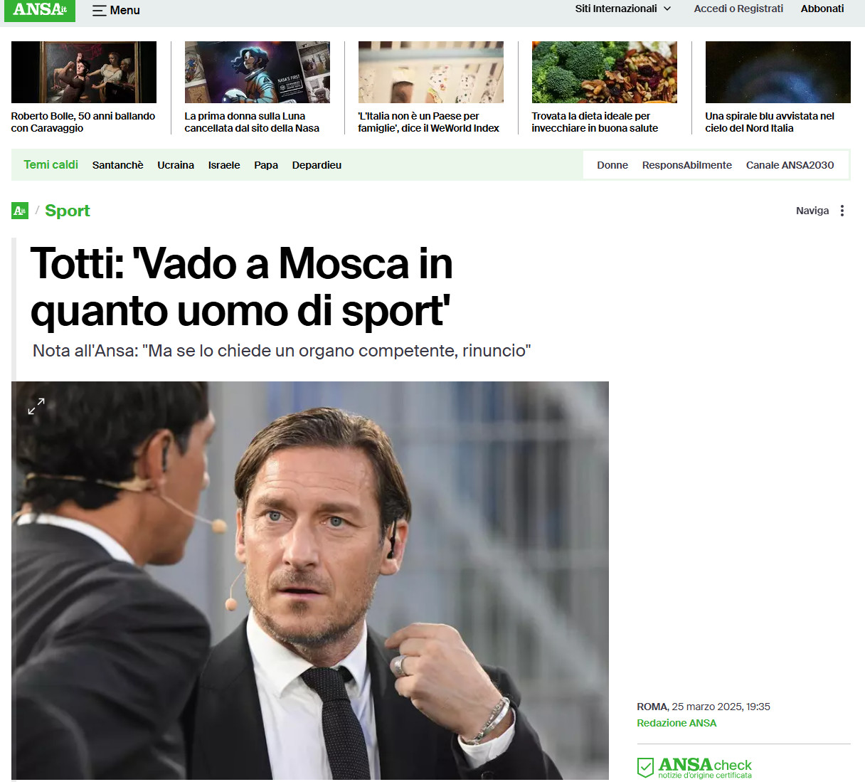 ФОТО: СКРИНШОТ СТРАНИЦЫ САЙТА ANSA.IT