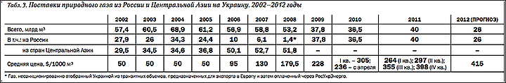 Источник: Косикова Л.С. Российско-украинские отношения в "газовой сфере": анатомия конфликтов // Российский экономический журнал. 2011. №5