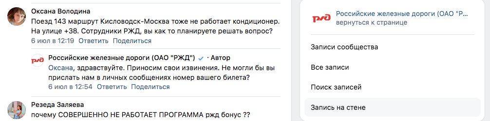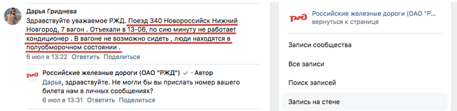 Примеров таких жалоб только за июль и только в комментариях в официальной группе АО "РЖД" во "ВКонтакте" немало. И это мы отобрали только те, где указаны номер поезда и дата.