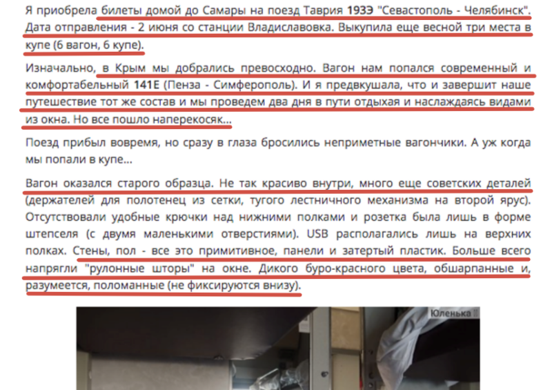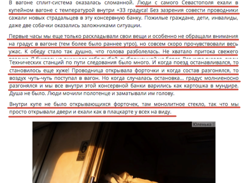 — подробно рассказывает 14 июля на популярном сайте отзывов irecommend.ru пассажирка поезда 94 Севастополь — Челябинск.