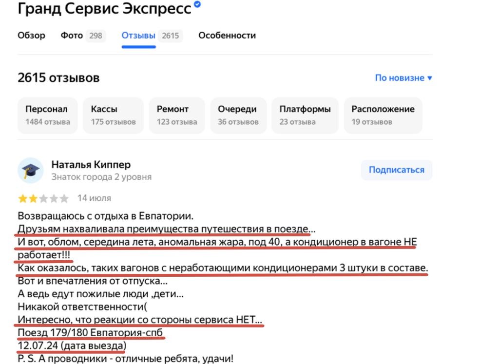 Кстати, проблема в том поезде не решилась и спустя пять часов после жалобы: