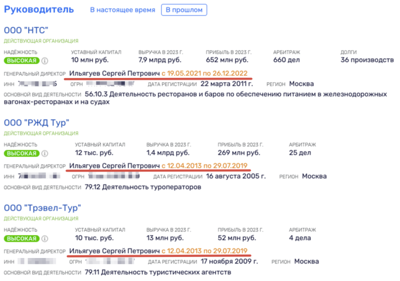 Если заглянуть в предыдущие места работы Ильягуева, то видим аналогичную картину.