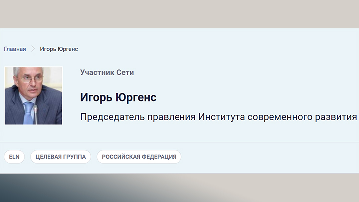 Неформальный сторонник ELN Игорь Юргенс//Скриншот страницы сайта www.europeanleadershipnetwork.org