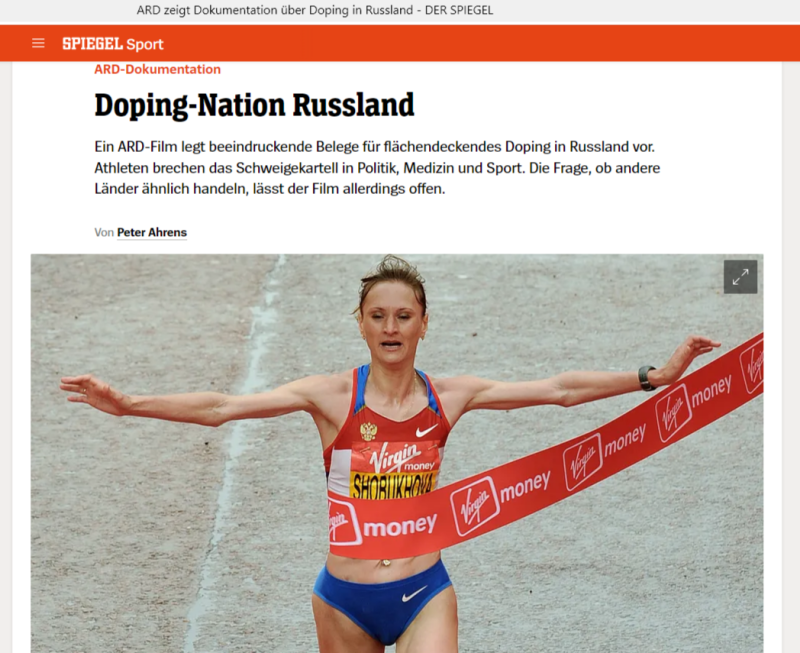 "Россия — допинговая нация", гласит заголовок статьи в "Шпигеле", где рассказывается о фильме ARD//Скриншот страницы сайта spiegel.de