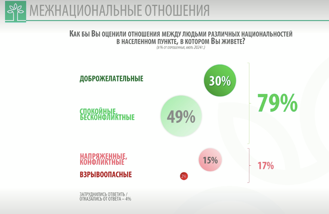 Аналогичная картина рисуется из опроса по межнациональной ситуации в целом: