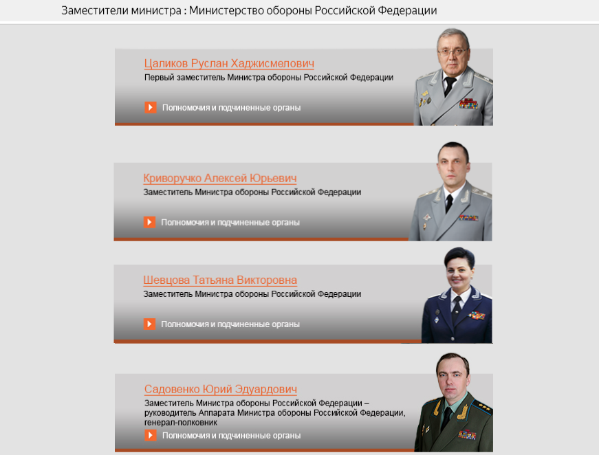 Четыре замминистра обороны, которые могут покинуть свои посты//Скриншот страницы сайта structure.mil.ru