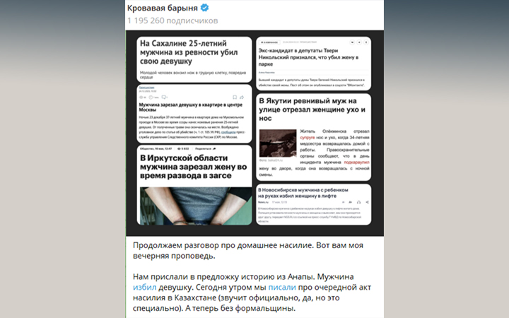 Заметки о домашнем насилии на интернет-ресурсах Ксении Собчак стали появляться регулярно//Скриншот поста из ТГ-канала "Кровавая барыня"