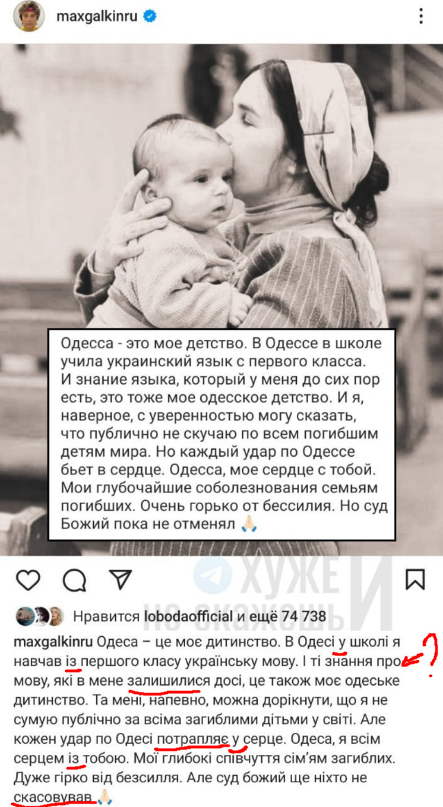 Максим Галкин* признался в любви Одессе на украинском языке. Комик рассказал о детских годах, проведённых в Одессе, а после опубликовал фото матери и грудного ребёнка, которые погибли в этом городе.