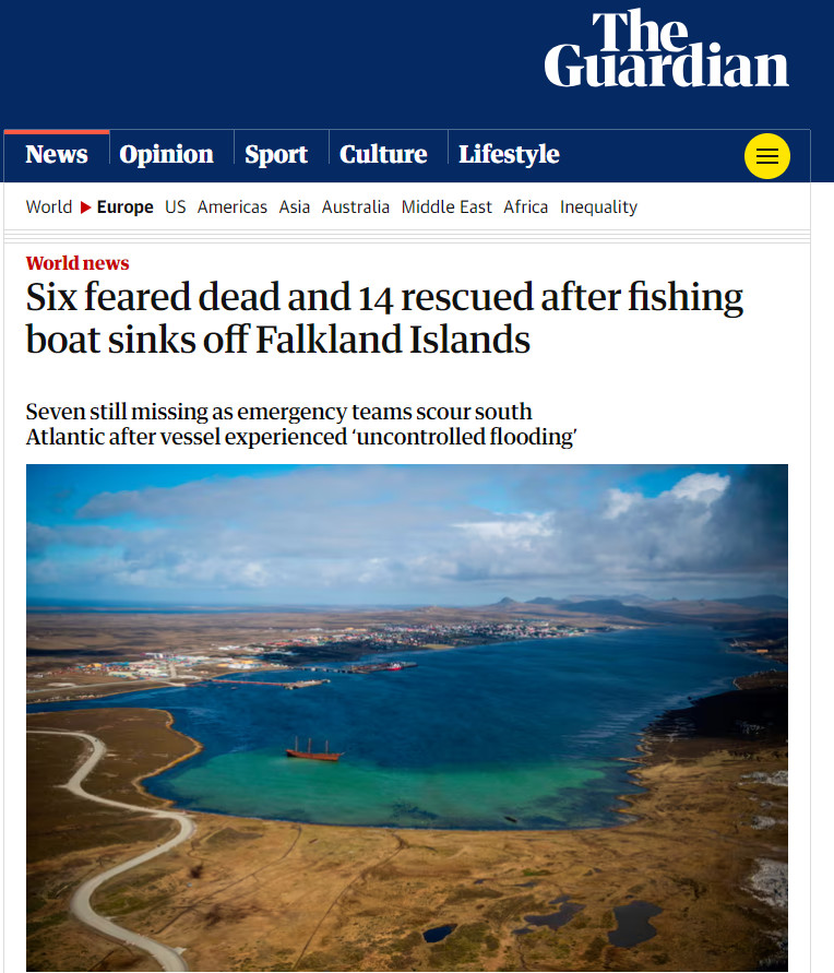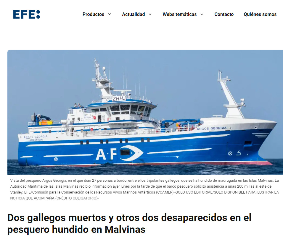Вечером 22 июля судно Argos Georgia, вышедшее из порта днем ранее, подало сигнал о "неконтролируемом затоплении", передаёт The Guardian со ссылкой на местные власти. В этот момент оно находилось в 200 морских милях к востоку от столицы Фолклендских (Мальвинских) островов Стэнли. К спасательной операции привлекли несколько судов и вертолёт, однако поиски были временно приостановлены из-за шторма и ветреной погоды, отмечает AP.