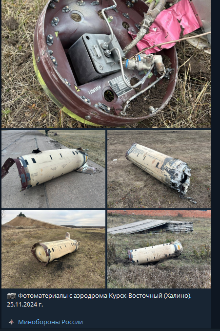 А 25 ноября 2024 года киевский режим нанёс ещё один удар восемью оперативно-тактическими ракетами ATACMS по аэродрому Курск-Восточный в населённом пункте Халино. Семь ракет были сбиты боевыми расчётами ЗРС С-400 и ЗРПК "Панцирь", одна достигла цели. В результате падения осколков ракет два военнослужащих получили лёгкие ранения, незначительно повреждены объекты инфраструктуры.