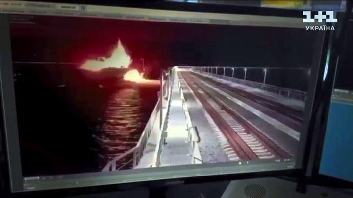 Безусловно, эта "духоподъёмная" бравада преследует все вышеобозначенные цели. Но при этом недооценивать слова Малюка тоже нельзя. Потому как - да, взрывали мост. Аж два раза. Впервые - 8 октября прошлого года, при помощи грузовика со взрывчаткой. Во второй раз уже 17 июля текущего года - при помощи надводного беспилотника.