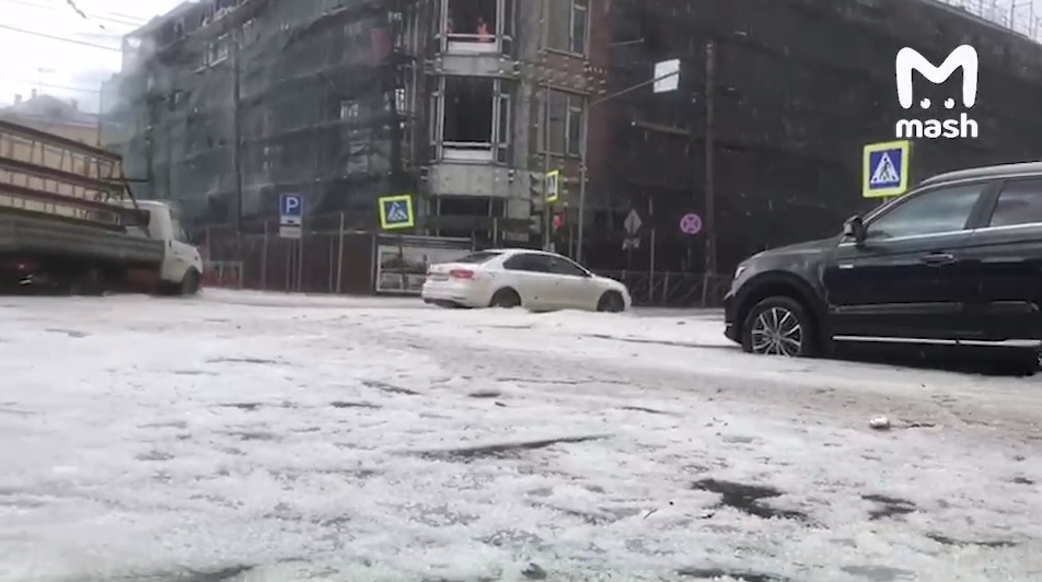 Сообщается, что ливень с градом обрушился на столицу Татарстана днем. В некоторых районах города град в диаметре доходил до нескольких сантиметров. В социальных сетях появились видео с затопленной Лево-Булачной улицей. На кадрах видно, что проезжающие автомобили практически едут по воде.