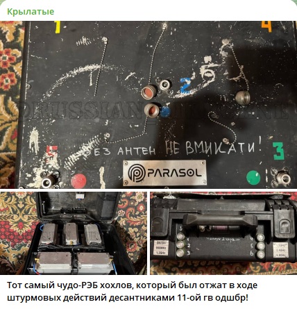 Также есть информация, что бойцы 11-й отдельной гвардейской десантно-штурмовой бригады смогли захватить ту самую украинскую чудо-РЭБ, о которой рассказывают солдаты с Курщины. Речь про комплексы РЭБ PARASOL-1 и PARASOL-2.