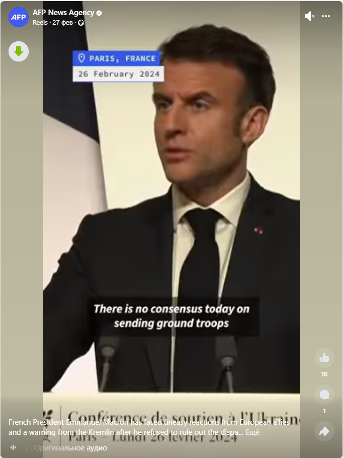 Европейские союзники в течение нескольких недель изучали план Парижа по отправке войск на Украину, США поддержали идею - AFP со ссылкой на источник.
