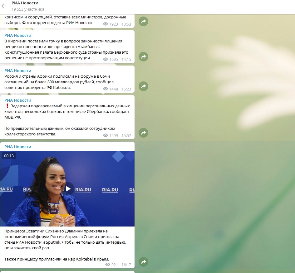 "РИА Новости" в своём официальном телеграм-канале поделилось видео выступления принцессы Эсватини, министра информационных технологий и связи страны Сиханизо Дламини, которая принимает участие в форуме "Россия - Африка" в Сочи.