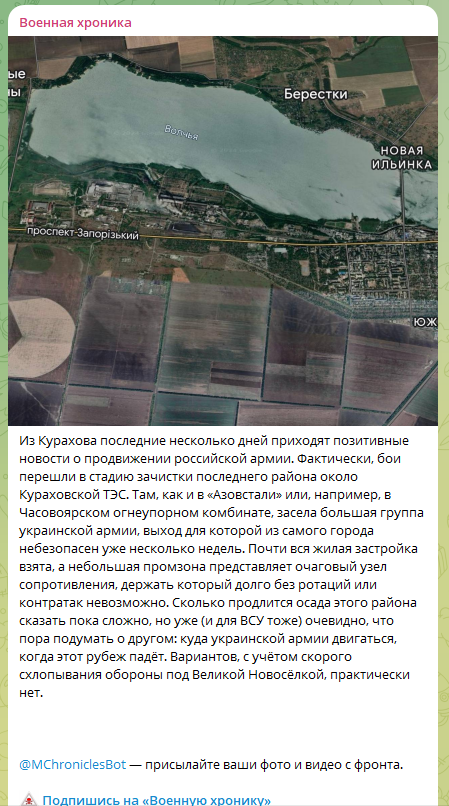 А пока в украинском сегменте соцсетей паникуют: боятся, что повторится история с Угледаром, где командование ВСУ до последнего не отдавало приказа отступать. Даже когда стало очевидно, что удержать город не получится. В итоге - огромные потери живой силы, которую командиры ВСУ не особо жалеют. Похоже, такой же сценарий ждёт и тех, кого бросили на убой в Курахово.