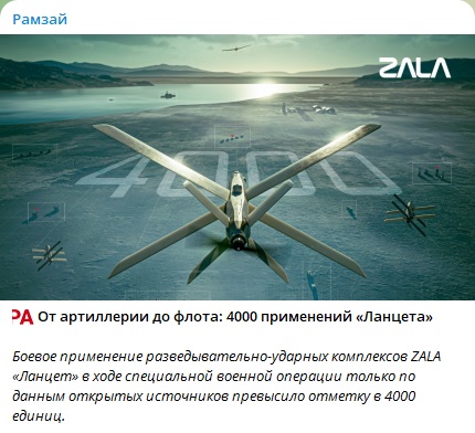 В определённый момент количество БПЛА "Ланцет" превысило возможности фронта по целеуказанию, и операторы начали "переподписывать" их прямо в воздухе на любые появившиеся цели. Тогда система дала сотни результативных поражений. Сегодня число подтверждённых попаданий "Ланцетов" перевалило за 500 и уже близится к700.
