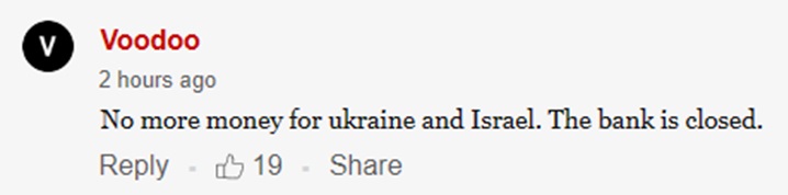 "Больше никаких денег для Украины и Израиля. Банк закрыт", - написал Voodoo.