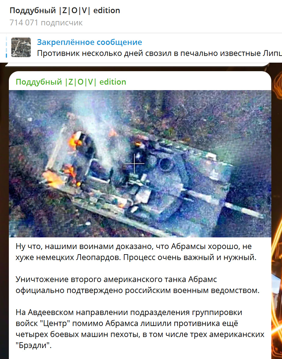 Военкор Евгений Поддубный в своём телеграм-канале также указывает, что после показательного провала с американскими танками противник предпочёл занять выжидательную позицию.