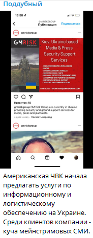 Американская ЧВК начала предлагать услуги по информационному и логистическому обеспечению на Украине. Среди клиентов компании - куча мейнстримовых СМИ,