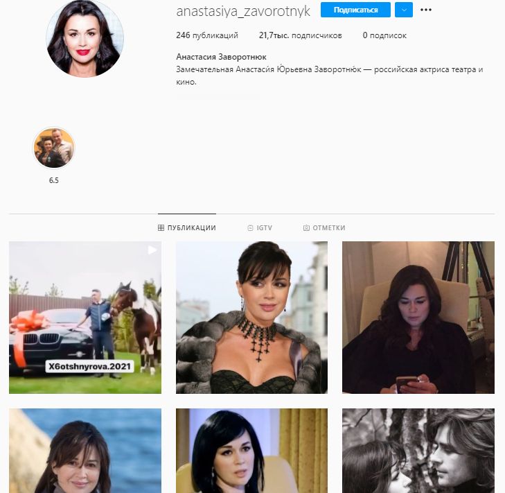 Анастасия Заворотнюк "ведёт личную страницу в Instagram"