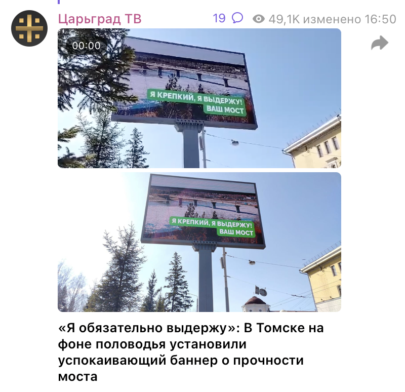 В Томске успокаивают население необычным способом. Фото: скриншот t.me/tsargradtv
