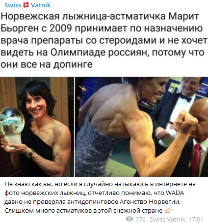 Не знаю как вы, но если я случайно натыкаюсь в интернете на фото норвежских лыжниц, отчётливо понимаю, что WADA давно не проверяла Антидопинговое агентство Норвегии. Слишком много астматиков в этой снежной стране,