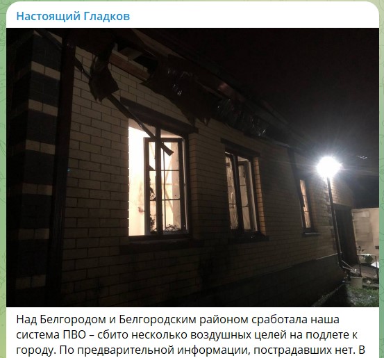 По словам Гладкова, на подлёте к Белгороду сбито несколько воздушных целей врага - сработала русская система ПВО.