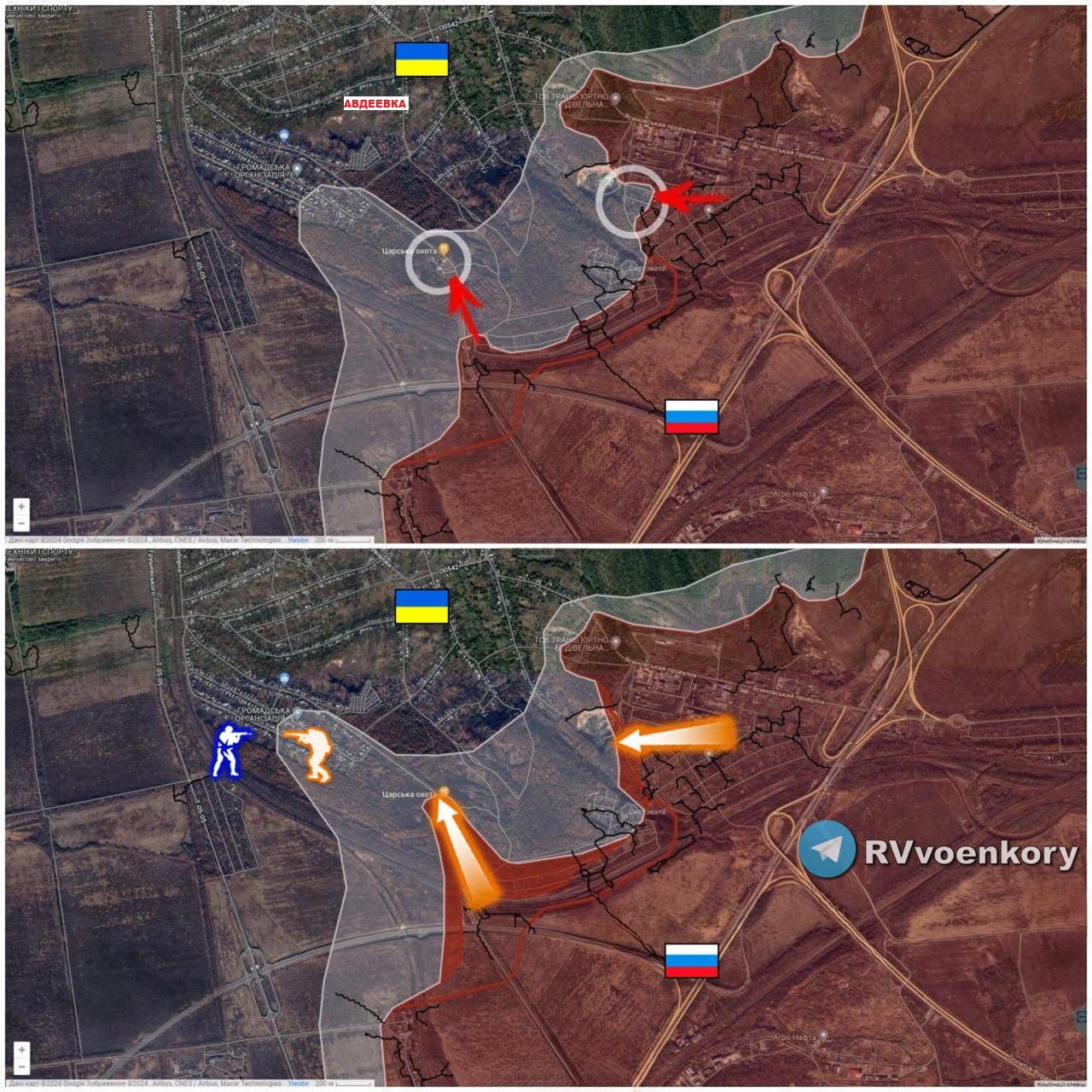 По его словам, Авдеевка сейчас на "паузе изменений". Ни русские военные, ни боевики ВСУ не отступают от своих намерений. Идут тяжёлые бои. Украинские военные пытаются выбить бойцов России с недавно занятых позиций при помощи дронов.